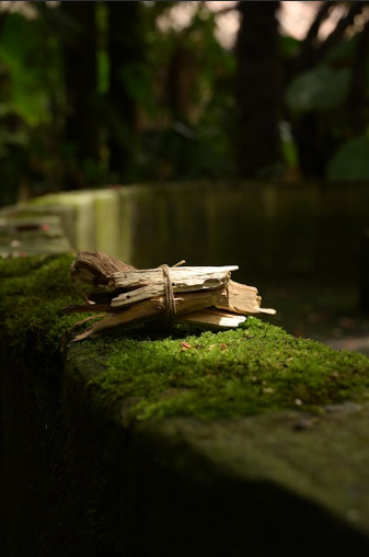 El cáñamo es recubierto con cera de abejas y se envuelve en el palo santo. Ideal para quemar el palo santo y prender humos sagrados de manera ceremonial.